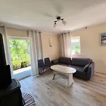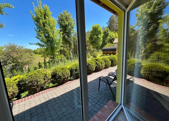 Mazurski Domek 2 Mragowo villa is located nearly 20 minutes' walk from Lake Kuc and offers guests to enjoy their evening on a terrace with outdoor dining areas. Featuring garden views, this Mragowo holiday home invites guests to visit the Museum of Military Equipment in Mrągowo, located around 7 km away.